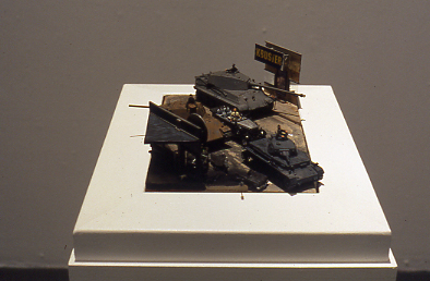 (1997-2002) Seven Dioramas and supporting materials (maps, guns, prints, etc) detailing the failed invasion of the United States by unknown forces. A variety of forces from throughout time come to our aid, but the Invaders are vinally defeated by a freak North Dakota blizzard. I did this in 1/72, 1/76 and HO scale, the result of wanting to make small art after the Think Tank. The 7-11 is the one in Fairfax, CA on Bolina Rd...